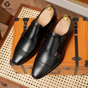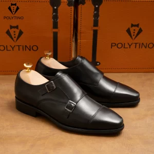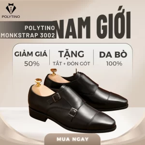 Giày Da Nam Công Sở DOUBLE MONKSTRAP 3002 Da Bò Cao Cấp POLYTINO Giày Cưới Nam Tăng Chiều Cao