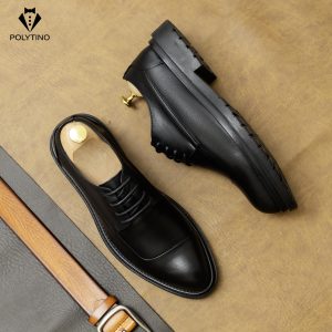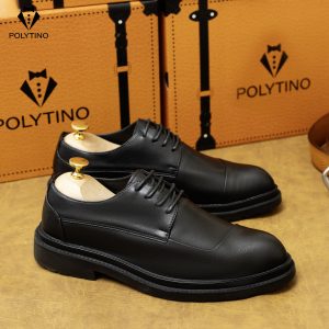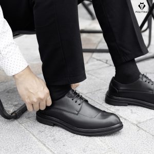 Giày da Nam Công Sở tăng chiều cao Da Bò Thật Đế Cao Su POLYTINO DERBY 208